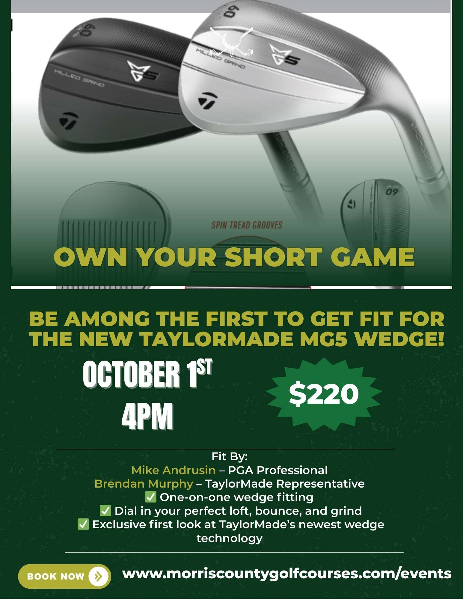 On October 1st at 4PM, you’ll have the chance to be among the very first to get fit for the brand new TaylorMade MG5 wedge at Pinch Brook!